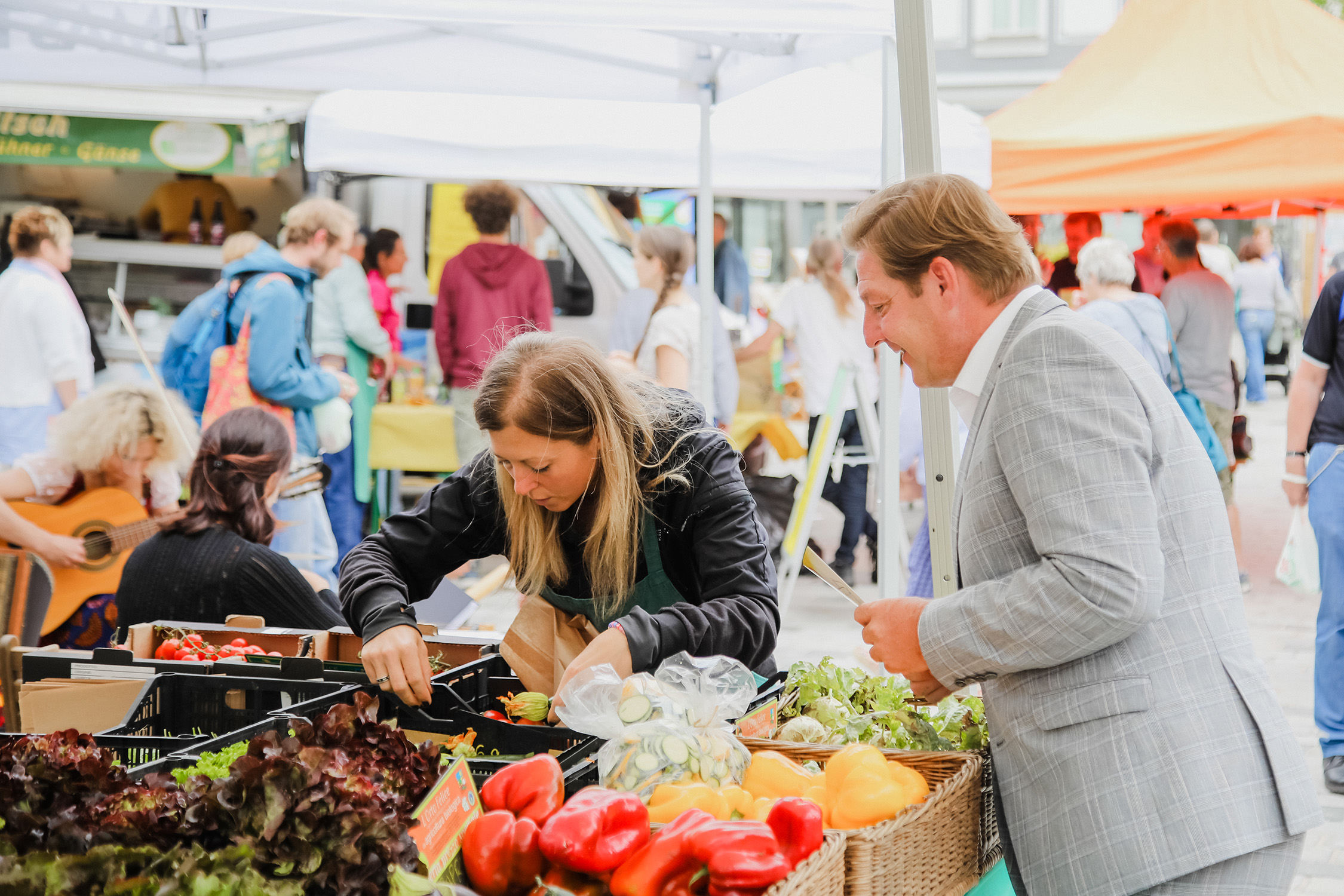 Die wichtigsten Produkte wie Obst, Gemüse, Schinken, Wurst, Fleisch und Fleischerzeugnisse, Fisch, Eier, Teigwaren, Brot und Gebäck aus Dinkel, Roggen, Weizen und Kammut, Honig, Kuh-, Schaf-, Ziegenmilch und Milchprodukte, Lein- und Kürbisöle, Fruchtsäfte, Naturkosmetik, Kerzen, Wolle und Felle findet man aus eigenem Erzeugnis an den Ständen der BIO-Bäuerinnen und -Bauern.