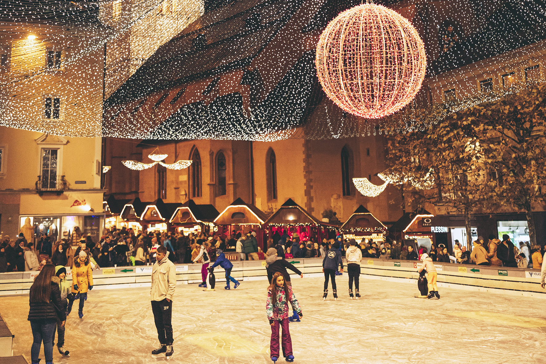 Wenn tausende Lichter die romantischen Gassen der Villacher Innenstadt erhellen, dann liegt ein ganz besonderer Zauber in der Luft. Der festlich geschmückte Stadtkern erstrahlt in warmem Glanz und sorgt für eine stimmungsvolle Atmosphäre, die Groß und Klein begeistert. Während die Erwachsenen bei den Genussständen regionale Schmankerl probieren und sich auf den Jahreswechsel einstimmen, gibt es für die jüngsten Besucher:innen ein besonderes Highlight: den beliebten Eislaufplatz direkt vor dem Rathaus.