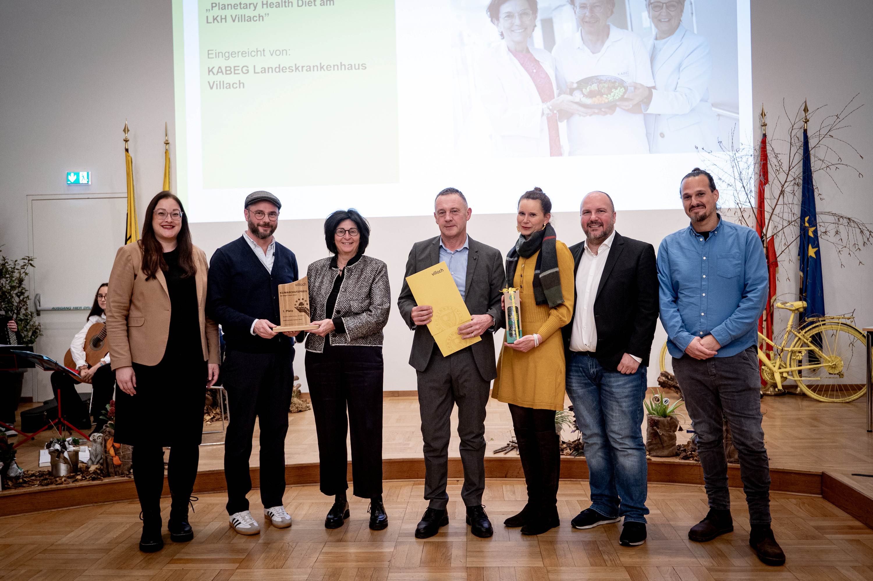 - 1. Platz: Das LKH Villach setzt in seiner Küche auf überwiegend pflanzliche, gesunde und saisonale Speisen, konsequente Fleischreduktion und regionale Beschaffung: Das eingereichte Projekt „Planetary Health Diet“ versorgt Tausende Patient:innen und Mitarbeiter:innen, aber auch Essen auf Rädern, Kindertagesstätten und etliche mehr mit nachhaltiger Kost. Es steht für Bewusstseinsbildung und Klimaschutz. Die Jury würdigte es mit dem ersten Platz.