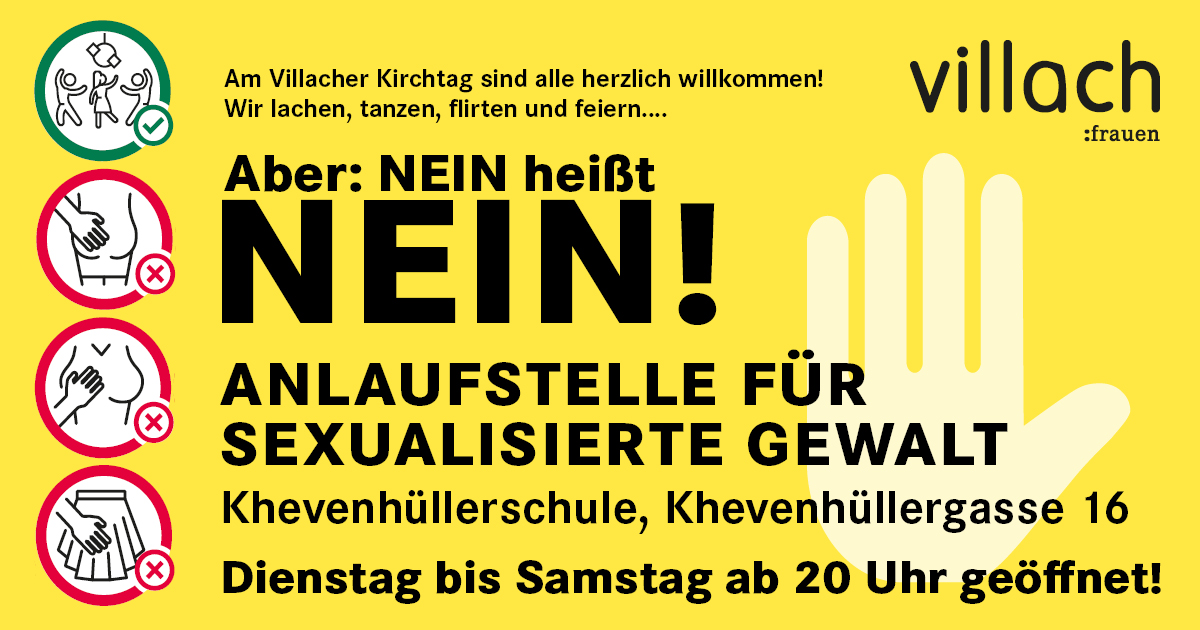 Das umfassende und vorbildliche Sicherheitskonzept am Villacher Kirchtag sieht auch heuer wieder eine Anlaufstelle für Frauen zum Thema sexualisierte Gewalt in der Khevenhüllerschule vor. „Bei Großveranstaltungen sind vorbeugende Sicherheitsmaßnahmen mittlerweile Standard, um Besucher:innen ein sicheres Gefühl zu vermitteln. Im Falle einer Grenzüberschreitung gibt es dann eine professionell ausgebildete Ansprechperson“, erklärt