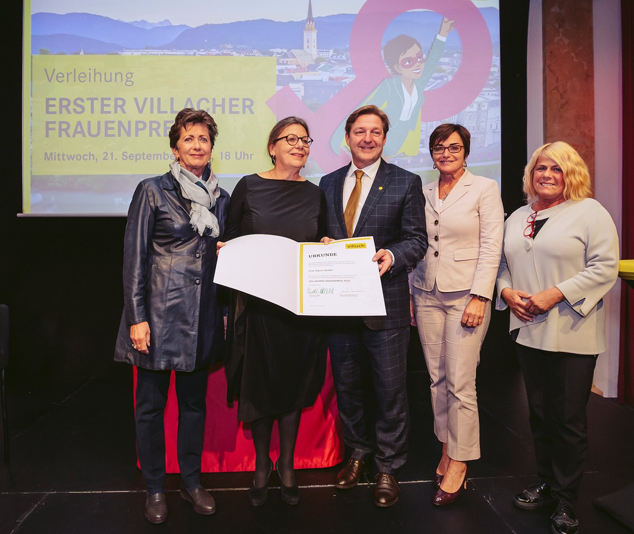 Im feierlichen Rahmen wurde am 21. September der erste Villacher Frauenpreis verliehen. Sigrun Alten erhielt den Preis für ihr jahrzehntelanges freiwilliges, berufliches und persönliches Engagement für Frauen und deren Gleichstellung.