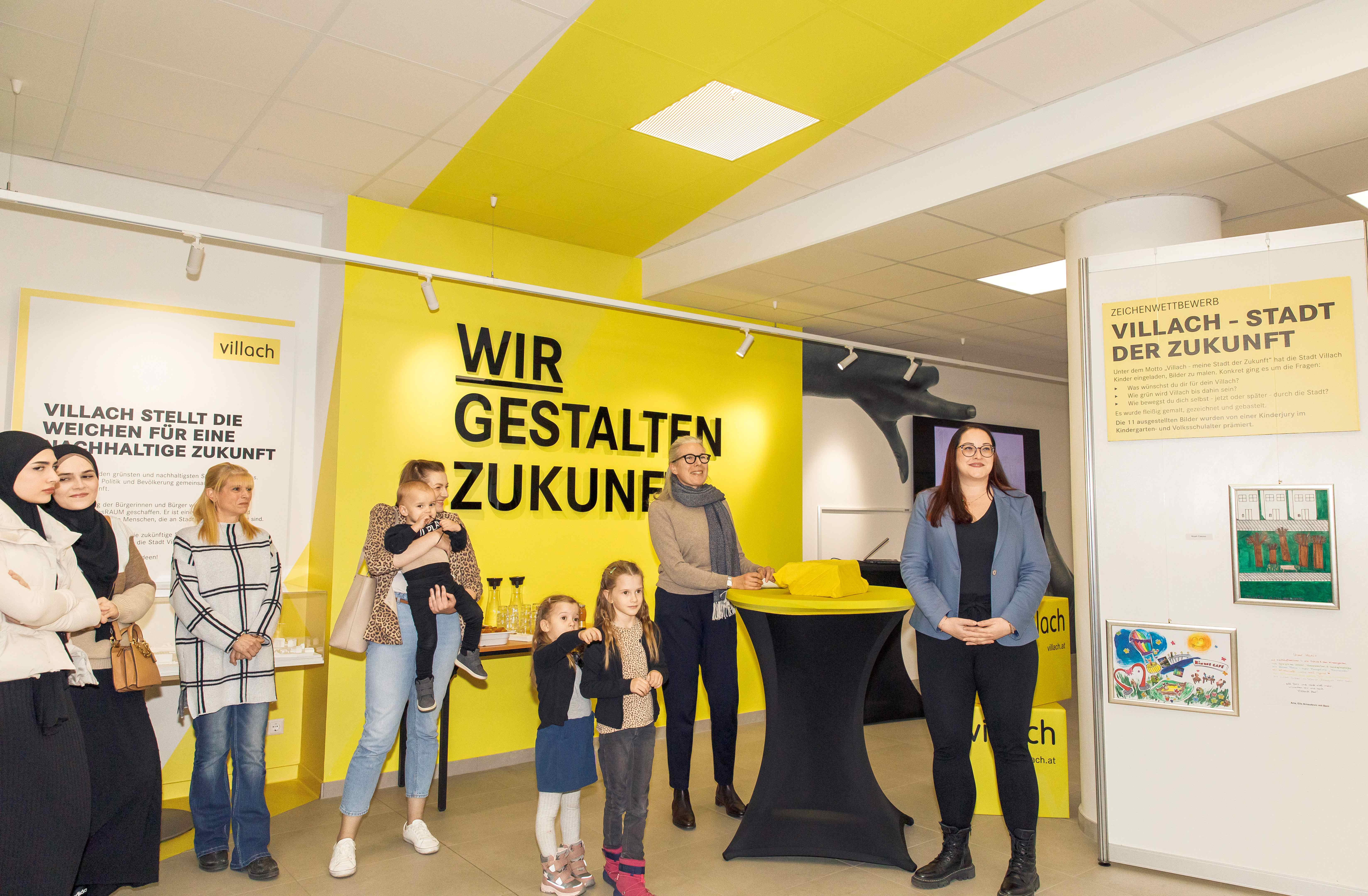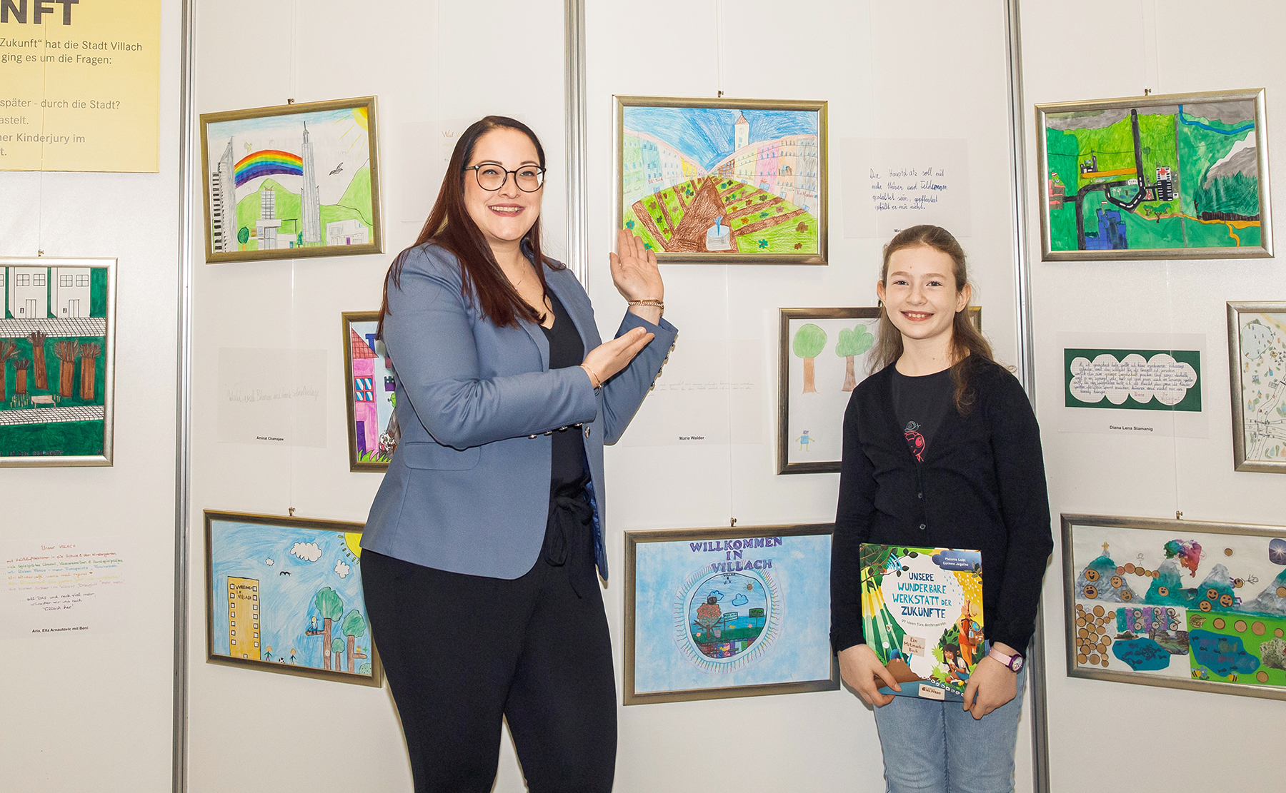 Als Kulisse für die Workshops (siehe Info unten) sind im lebensRAUM die Bilder des Malwettbewerbes „Stadt der Zukunft“ ausgestellt, an dem im Frühjahr viele junge Villacher:innen bis zum 14. Lebensjahr teilgenommen haben. Die Ausstellung wurde am 12. November eröffnet, die Bilder sind dann bis 25. Jänner 2025 zu sehen.