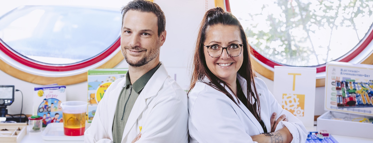 Alexander Treffner (Koordinator) und Andy Bürger (Pädagogin) sind unsere Labor-Experten und leiten das Mini Educational Lab. Beide haben maßgeblich das Modul-Programm konzeptioniert und sind mit voller "MINT"-Begeisterung auch bei der Umsetzung dabei. Sie stehen euch für alle Fragen und Anregungen gerne zur Verfügung.
