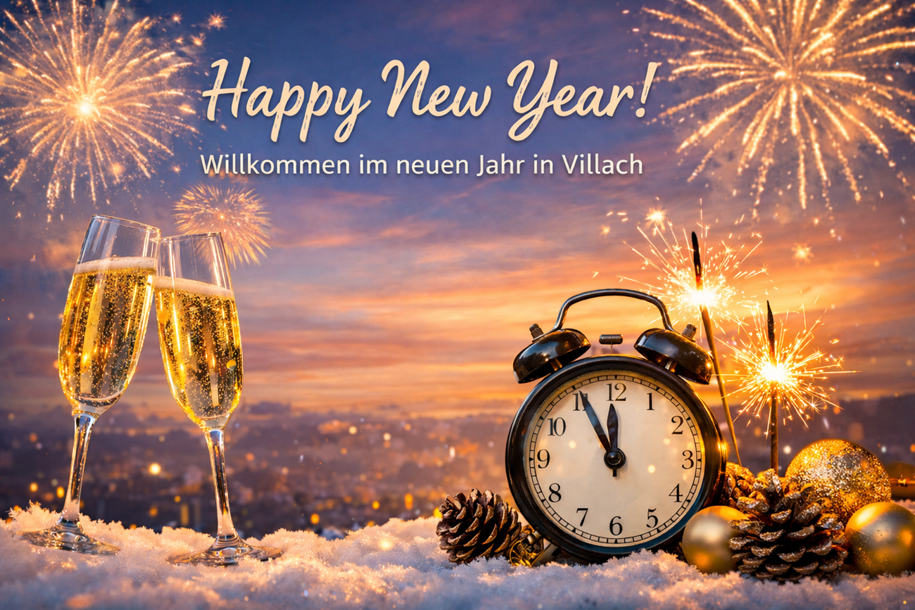 Wir wünschen allen Villacherinnen und Villachern, unseren Partnerinnen und Partnern sowie allen Gästen Gesundheit, Erfolg, Inspiration und viele schöne Momente im neuen Jahr.